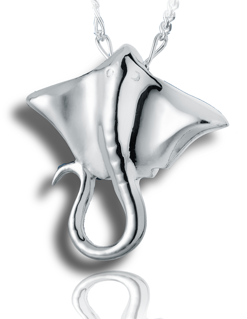La raie manta et ses mouvements élégants sont capturés ici dans ce pendentif coulissant à chaîne dissimulée.