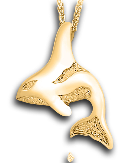 Les lignes douces et fluides, la texture et le poli exceptionnels de ce pendentif orque s'harmonisent parfaitement. La chaîne, dissimulée par l'aileron dorsal, révèle toute la beauté de ce bijou.