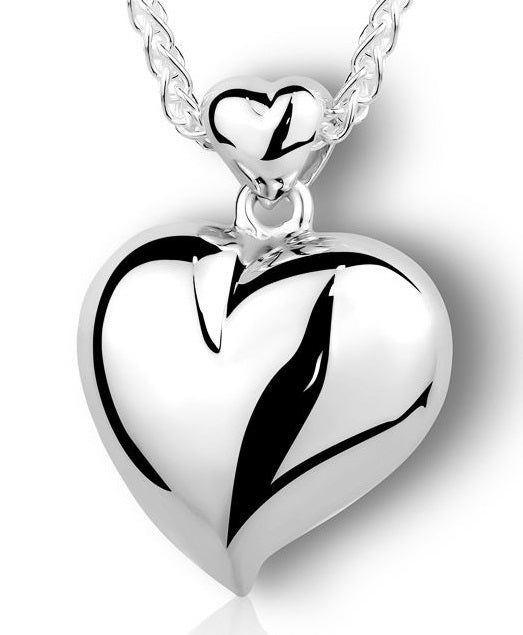 This Heart has two separate chambers with two screws, accented by a small Heart shaped bail for the chain.