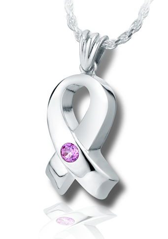 This is a larger and more defined version of the Awareness Ribbon. Beautifully contoured to hold a 3.5mm synthetic pink tourmaline and a classic bail for the chain.