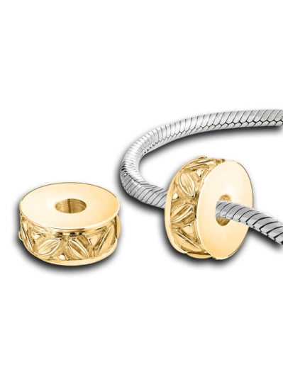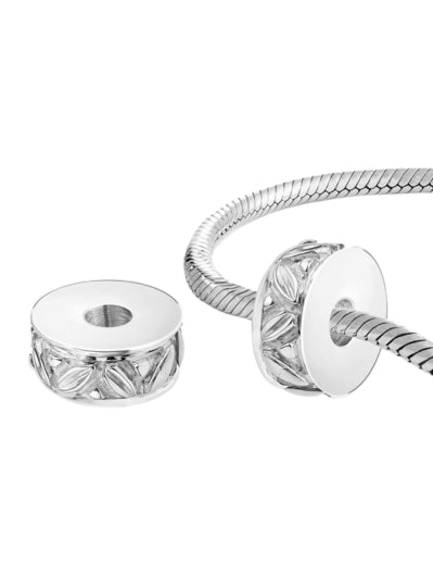 The leaves and Berries Bead has this motif wrapping around the bead. Fits most Pandora style bracelets and any bracelet less than 5 mm wide.