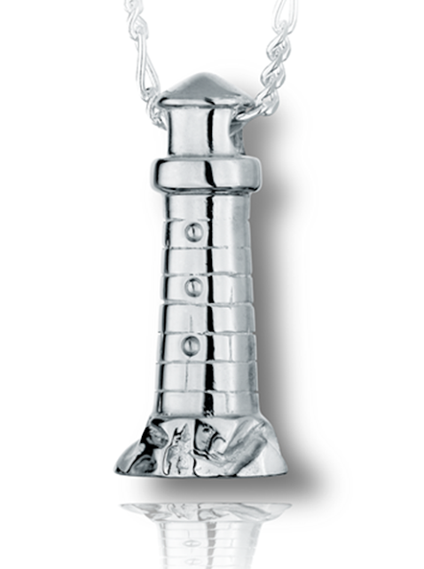 The Lighthouse standing strong as a beacon of light. As is this lighthouse pendant keeping safe the treasured memories of a loved one. Detailed to show the brick construction on the rocks and 3 small port holes.