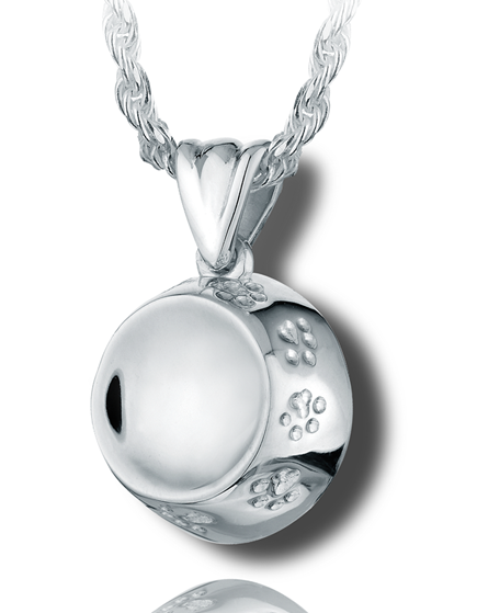 Perfect little Pet Dish with classic bail for the chain and tiny paw prints that work their way around the pet dish