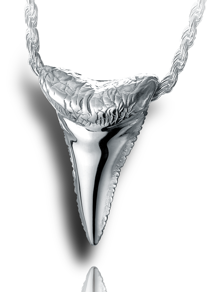 This replica of a Mako Shark Tooth even shows the serrated sides. So real life that if it were not for the silver color it might be mistaken for the real thing.