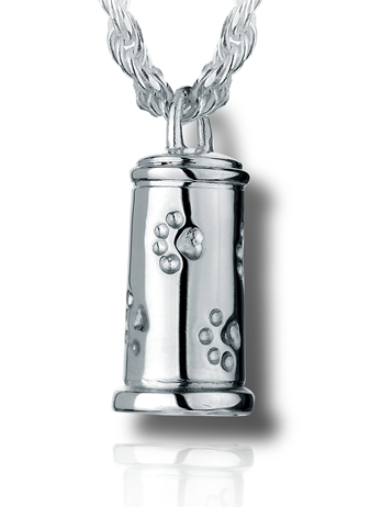 This traditional style urn pendant is small and discreet yet symbolizes the love for your precious pet. Tiny paw print work their way around the pendant.
